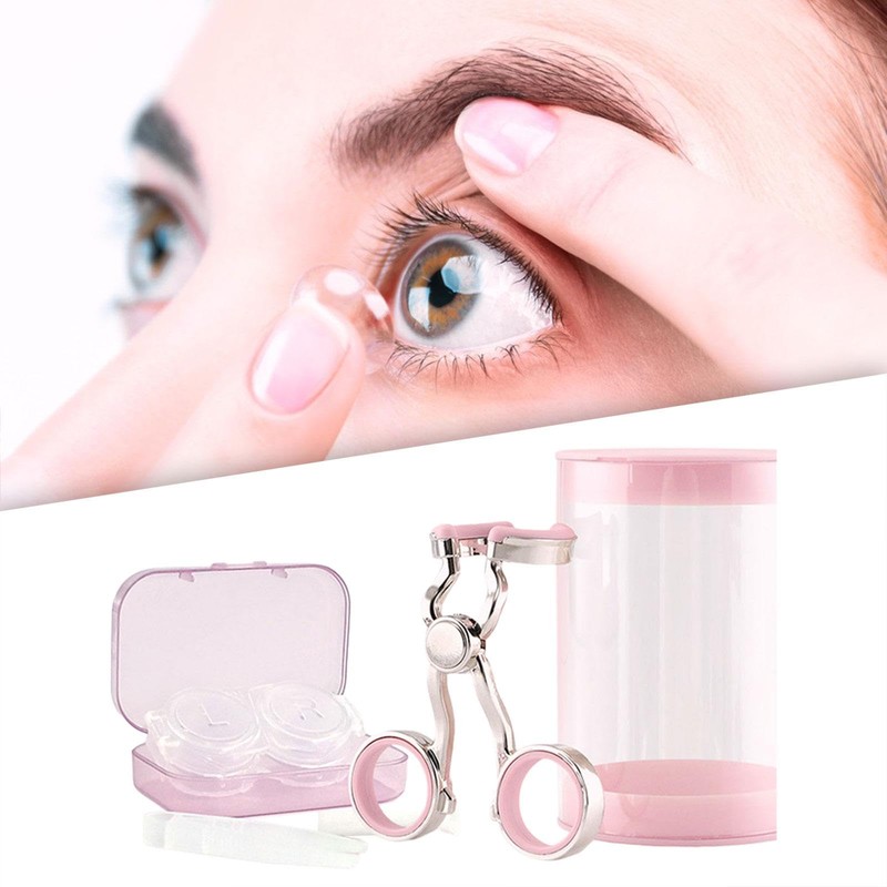 Milageto Contact Lens Wearing Aids Eyelid Opener, with Contact Lens Case, Contact Lens Insertion and Remover Tool for Trip, Light Pink