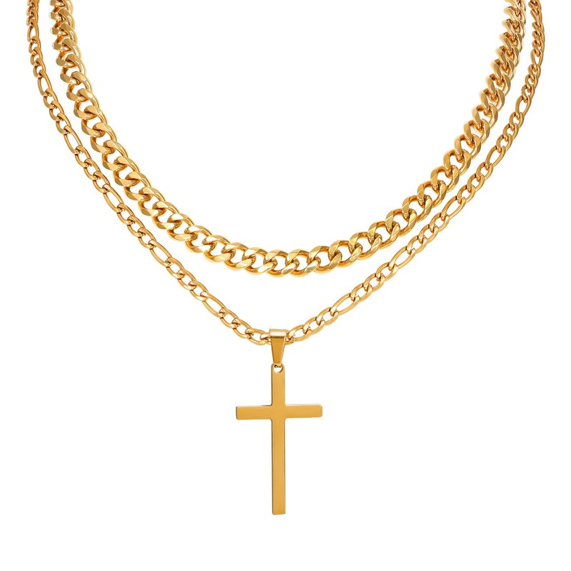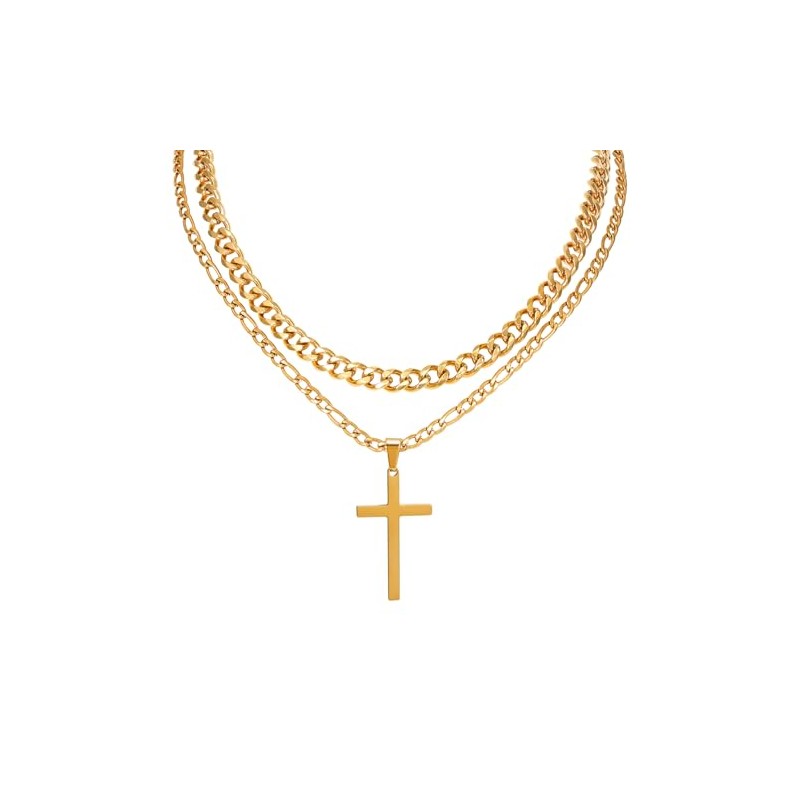 - Größe & Material - Der Kreuz-Anhänger misst 4,0 x 1,9 cm (1,57 x 0,74 Zoll). Die mehrlagige Halskette hat zwei Ketten: eine 44 cm lange kubanische Gliederkette und eine 50 cm lange Figarokette. Dieses klassische Stück ist aus hochwertigem Edelstahl gefertigt