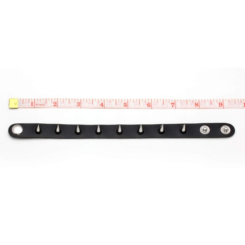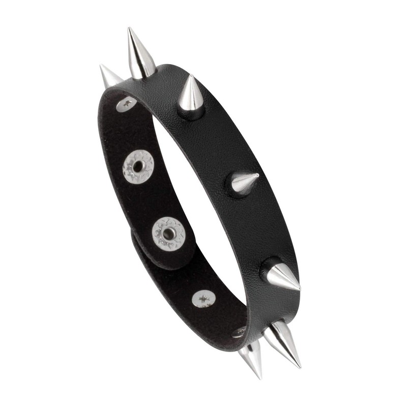 - Broad leather armband with spikes and rivet decoration and adjustable strap.