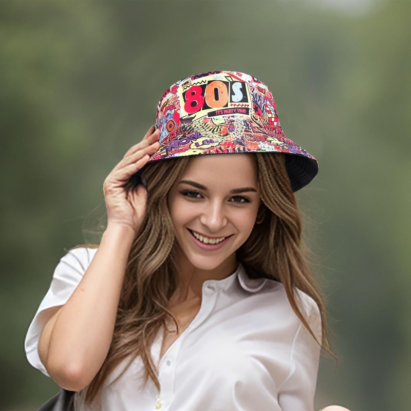 - Back to 80s 90s theme, retro and casual bucket hat, memphis style design is a great accessory to clothes with a more fashionable style and can also be used as a street fashion element.