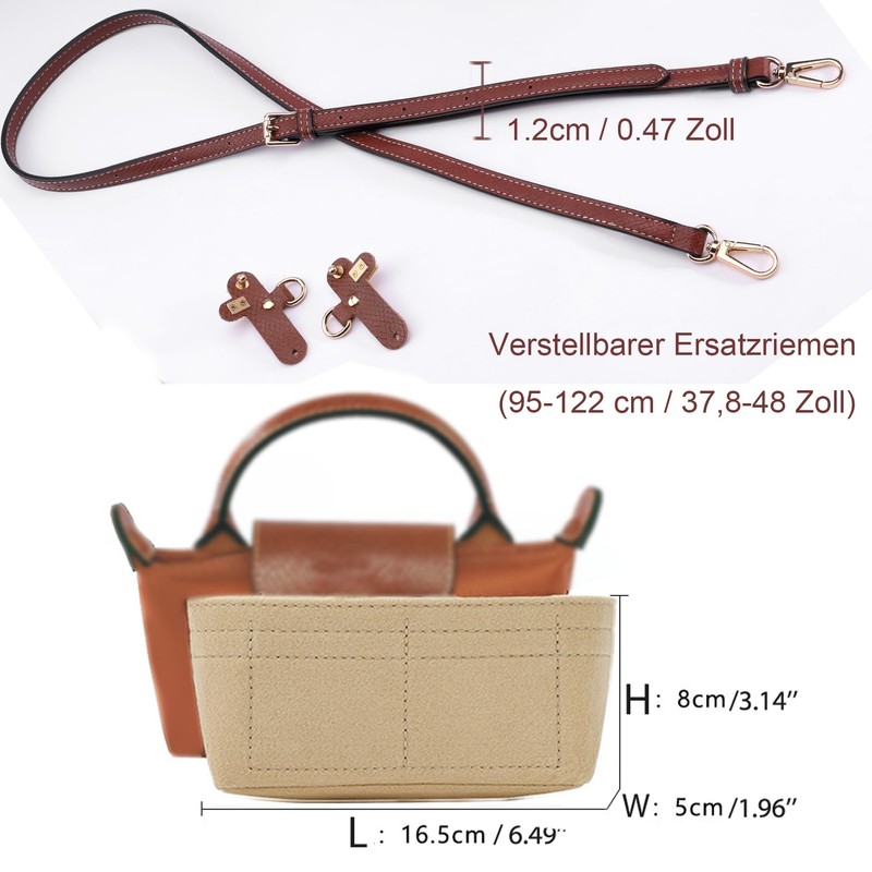 - Adjustable and comfortable shoulder strap: Adjustable replacement strap (95-122 cm / 37.8-48 inches) - The 1.2 cm (0.47 inches) wide carrying strap made of robust nylon adapts to your carrying way. Ideal for Le Pliage, Shopper & Travel Bags.