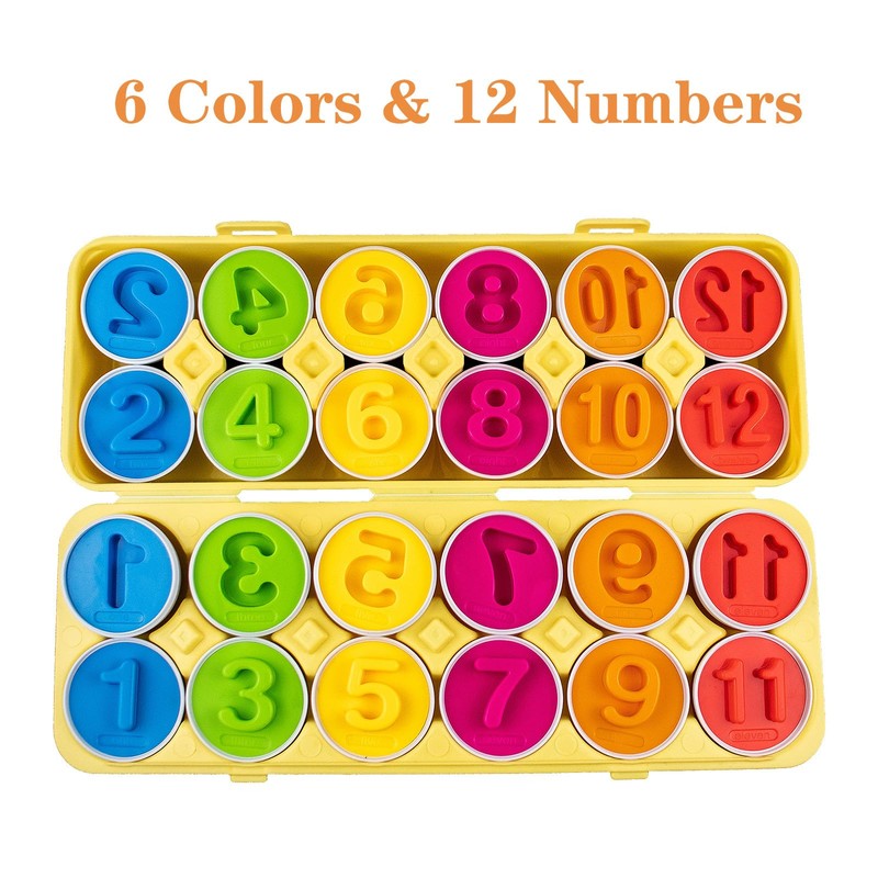 • Matching egg toy: the sorting and matching toy includes 12 white eggs with egg holder, combining six different colours (blue, yellow, red, purple, green, orange) and 1-12 numbers. Perfect for young explorers who want to discover number magic!