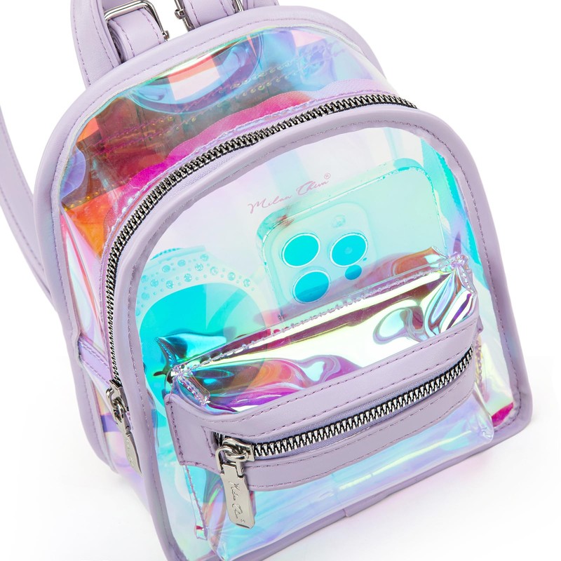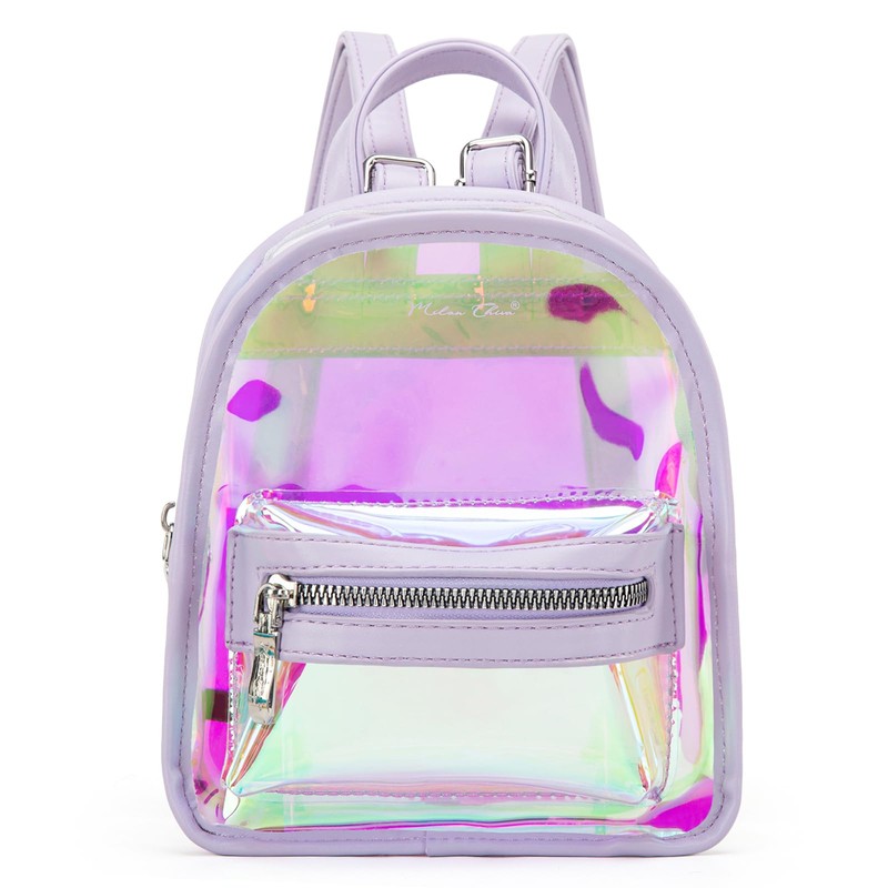Milan Chiva Clear Backpack for Stadium Events See Through Mini Backpack Holographic Bag