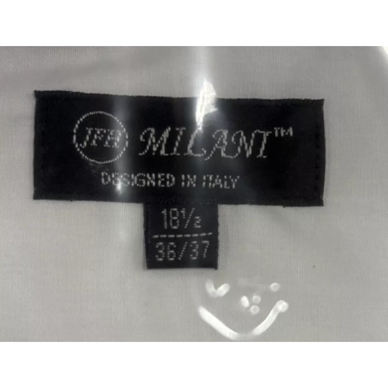 The Milani Men's Tuxedo Shirt features French cuffs and comes with a coordinating bow tie, offering a formal and stylish look. This dress shirt is designed in a classic white color, suitable for formal occasions or black-tie events. With a size of 18 1/2, this shirt is tailored for a comfortable and regular fit. Perfect for men looking to complete their tuxedo ensemble with a touch of sophistication.