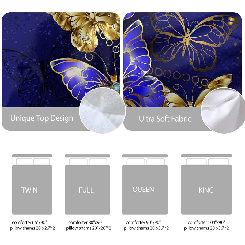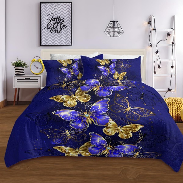 MILANKET Butterfly Comforter Set King Size, 3pcs Purple Butterfly Bedding Sets for Adult, Microfiber Soft Bed Set with 1 Comforter and 2 Pillowcases