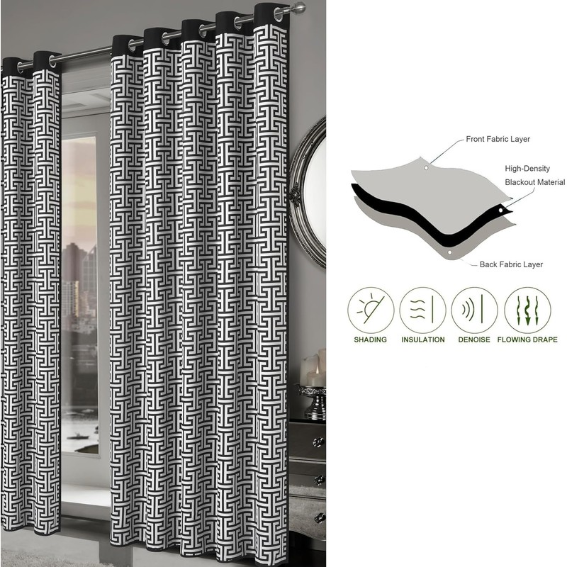 Milano Blackout Eyelet Curtains – Thermal Insulated Geometric Print Ring Top Curtain Pair – Light Blocking Window Drapes for Bedroom, Living Room & Home Décor (Milano, 66" (Width) x 90" (Drop))