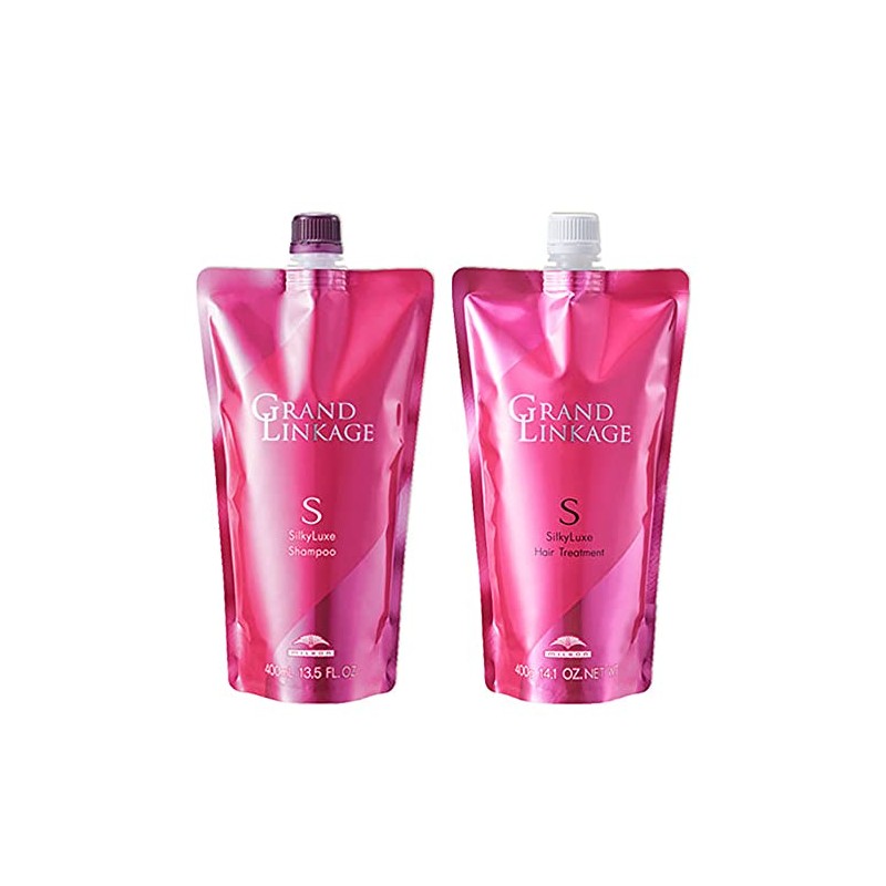 Milbon Grand Linkage Silky Luxe Shampoo 13.5 fl oz (400 ml) + Treatment 14.1 oz (400 g) Refill Set