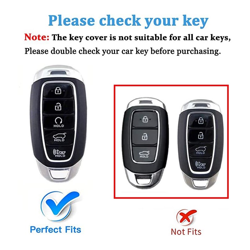 - [Fits Model] This Key Fob Cover Compatible with Smart 5 Buttons Hyundai Palisade Elantra.Please carefully check your car key fob the same one as the fob key in 2nd image before you place the order.The package include 1*Case,1*Leather Keychain,1*Screwdriver.