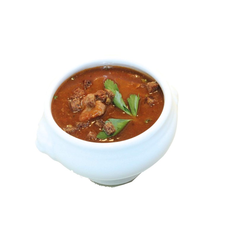 - The goulash for soup is cut from the calf. It is a tasty meat and becomes very soft and creamy by cooking. Seasoned and tasted in Hungarian style. With fresh black bread, a delicious food. Goulash soup made from beef 40%, meat broth, onion, vegetables, tomato paste, wheat flour, salt and spices.