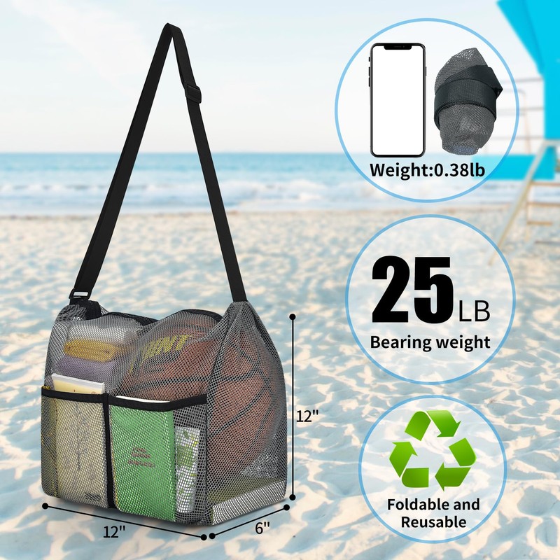 - BREATHABLE AND SANDPROOF: Mesh for ventilation, draining out sand and water, quick-drying. This mesh bag for women and men is perfect for taking to the beach, the gym, or the pool. It's also great for carrying clothes and other personal items when traveling.