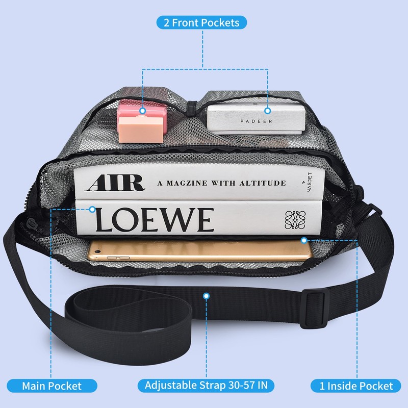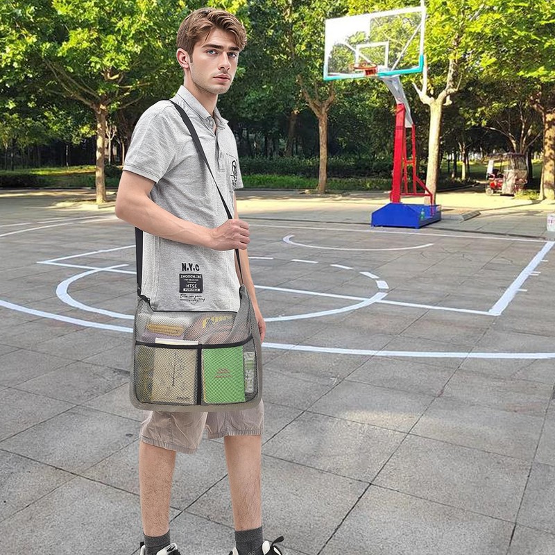 - LARGE CAPACITY: This sports mesh crossbody bag has a long zipper closure. It's perfect for carrying a variety of items such as gym clothing, swim gear, sport towel, and daily supplies. The mesh shoulder bag is perfect for gym, sport, yoga, dance, travel, carry-on, luggage, camping, hiking, teamwork, training, and more!