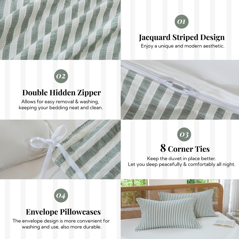 - Boho Chic Design: Elevate your bedroom with our jacquard duvet cover set. The jacquard stripes meet soft color, this duvet cover showcases a rich texture and elegant boho aesthetic. The raised jacquard patterns create dimensional luxury that’s as tactile as it is visual.