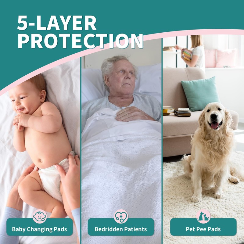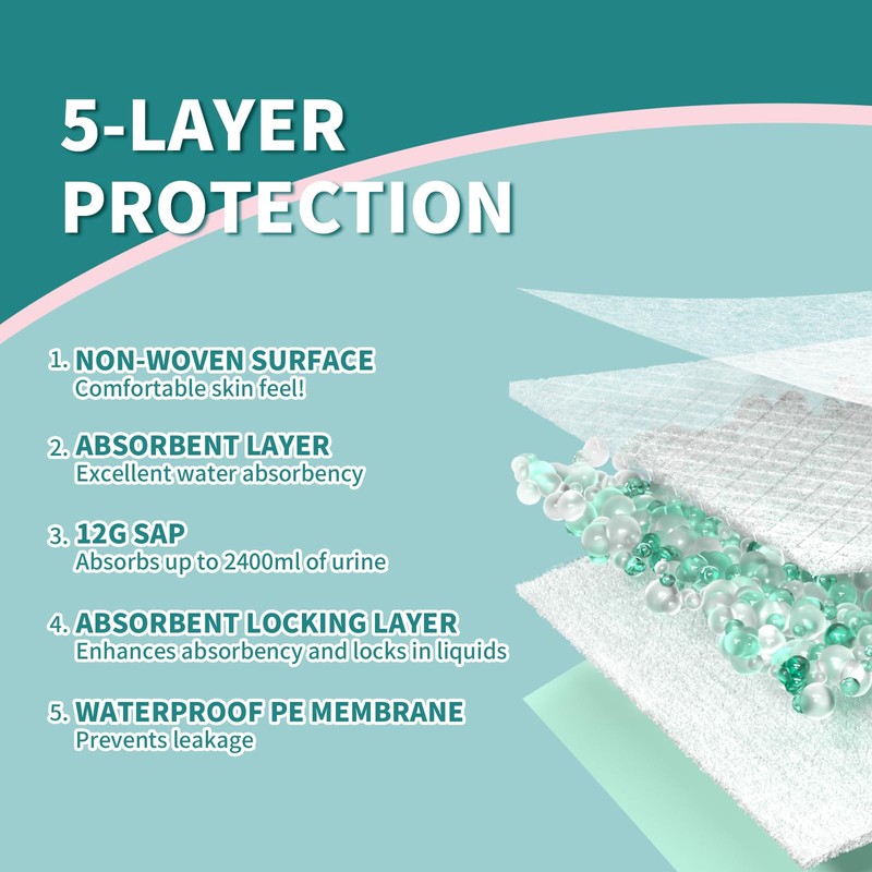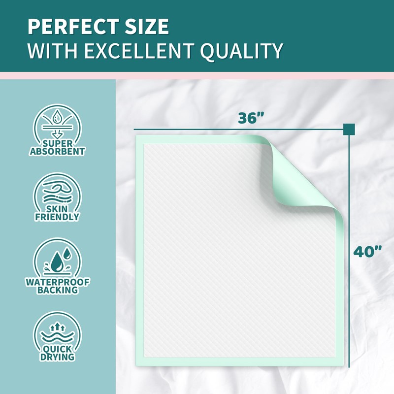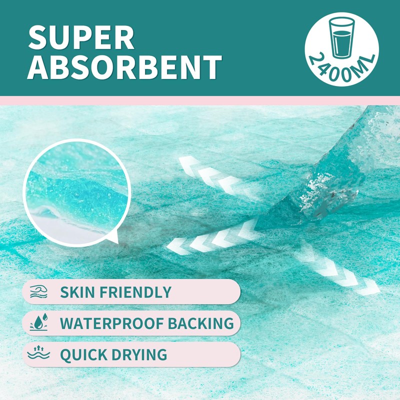 - DURABLE AND TEAR RESISTANT: Each disposable bed pads is durable and tear resistant, retaining its shape and structure even after use The integrity of each disposable chucks pads is guaranteed, ensuring you a comfortable and quiet experience