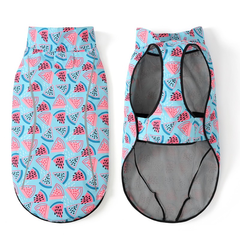 Mile High Life | Dog Raincoat | Adjustable Water Proof Pet Clothes | Lightweight Rain Jacket with Reflective Strip | Easy Step in Closure, Light Blue Watermelon, Medium