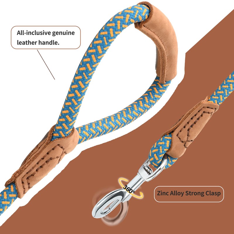 - Heavy Duty Material: The dog leash has the strongest 1/2-inch diameter rope to withstand long walks, heavy runs, and rainy weather. The strong dog leash uses unique machine knitting technology which is ultra-durable and wear-resistant and also has good shock absorption