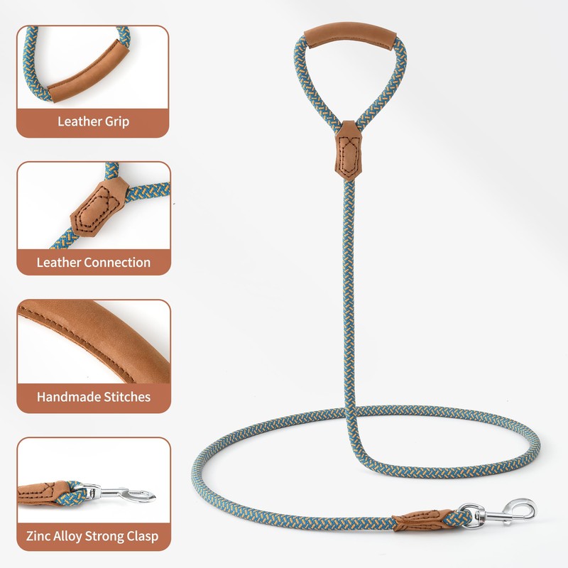 - Comfort Leather Handle: The handle is made of genuine leather, which makes it comfortable to hold and allows you to easily control your active furry baby, and protect your hand from rope burn. Premium genuine leather will not produce unpleasant odors that make your dog uncomfortable