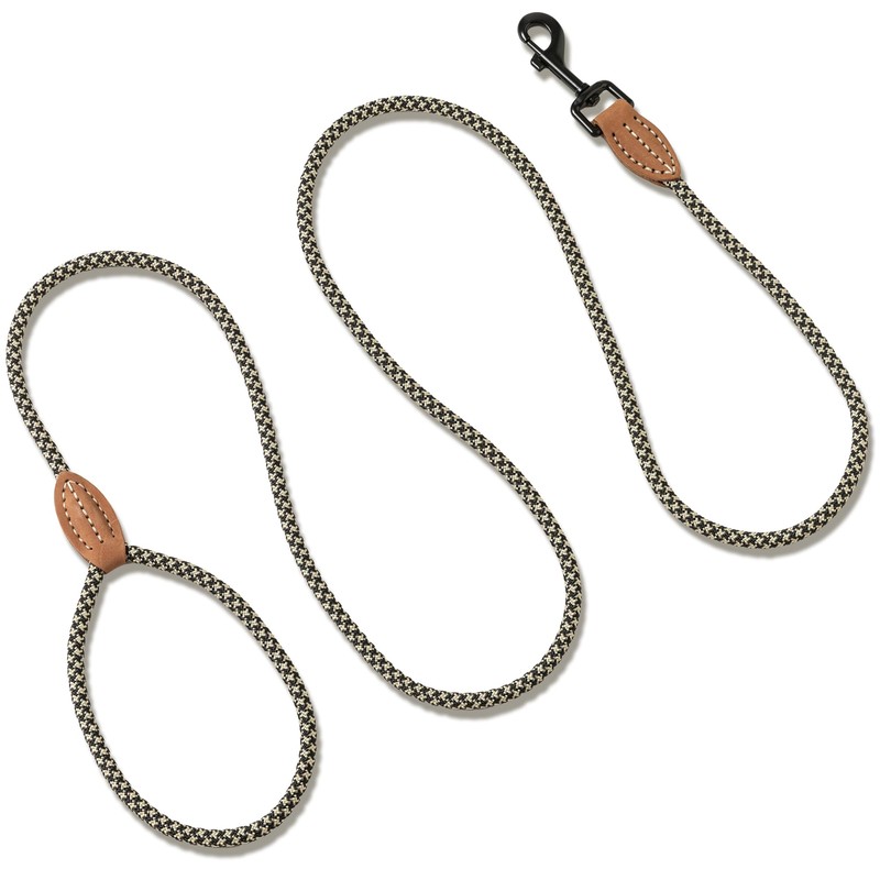 Mile High Life Small Dog Leash, Thin Rope Leash with Genuine Leather Connection and Heavy Duty Metal Clasp, Great for Small Medium Dogs(Black Khaki,60 Inch-1/3)