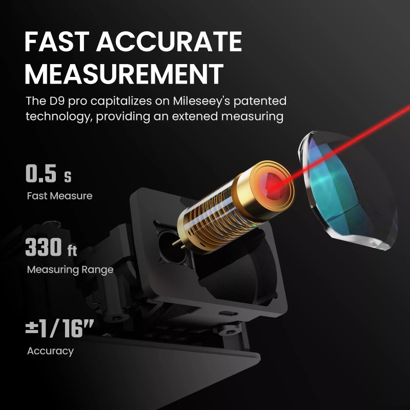 MILESEEY 330Ft Laser Measurement Tool ±2mm Accuracy M/in/Ft Unit Switching Touchscreen