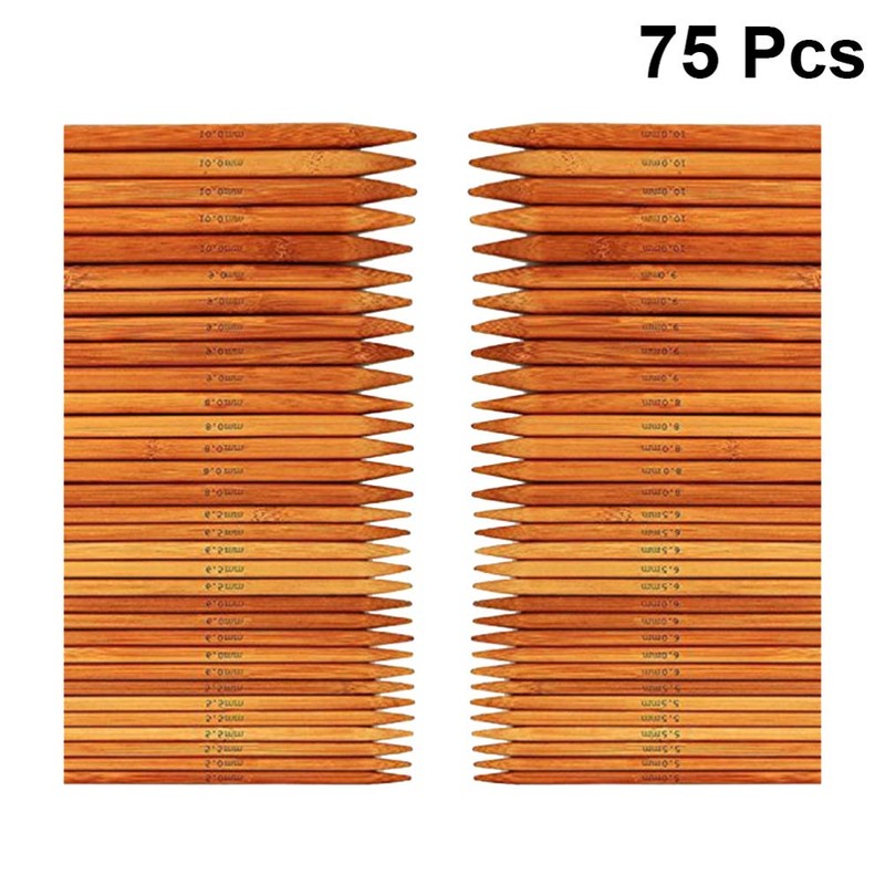 Milisten 75 Pcs Knitting Needles Set Bamboo Double Pointed Knitting Needles Set Crochet Sweater Needle Weave Craft Tool