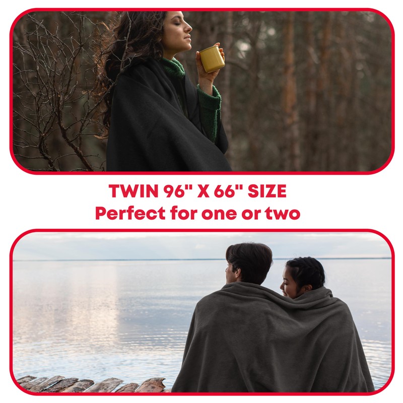 - SPACIOUS & COZY FOR TWO: With generous dimensions of 96" x 66", our large blanket comfortably fits two people, whether you’re camping, attending outdoor events, or adding an extra layer of warmth to your emergency gear. It’s also ideal for a cozy night under the stars with its durable 5 lbs weight.