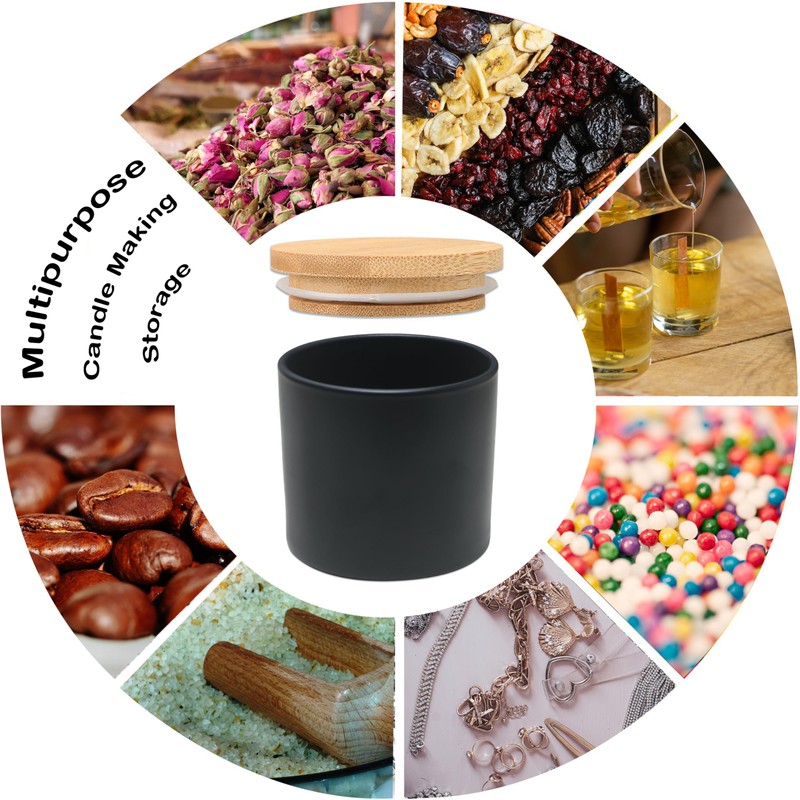 - ▶️ Multipurpose: this glass candle jars with lids are designed mainly for organization and storage. made from thick glass and perfect for candle making and store a variety of food like coffee, jam, dried food, dried flowers, herbs, spices,nuts, tea leaves, etc. can be applied as containers for powders such as salt, sugar, ointments, bath salts, essential oil, cosmetics, collection, flour,body lotion,slime, or other crafts. the airtight bamboo lids protects them no exposure to air.
