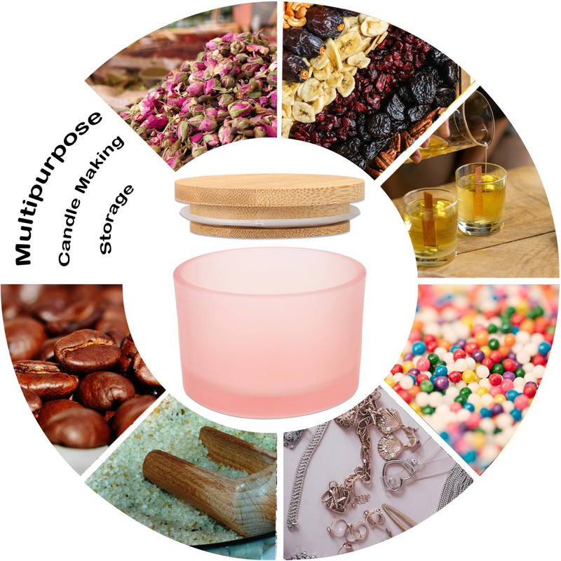 - Multipurpose: this glass candle jars with lids are designed mainly for organization and storage. made from thick glass and perfect for candle making and store a variety of food like coffee, jam, dried food, dried flowers, herbs, spices,nuts, tea leaves, etc. can be applied as containers for powders such as salt, sugar, ointments, bath salts, essential oil, cosmetics, collection, flour,body lotion,slime, or other crafts. the airtight bamboo lids protects them no exposure to air.