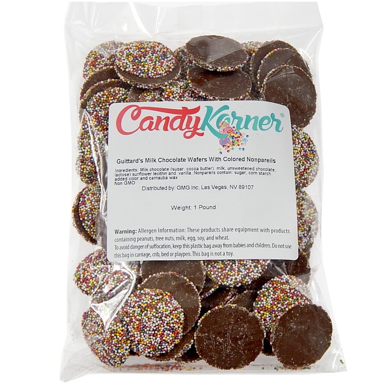 Milk Chocolate Non Pareil Wafers - Multi Color Non-Pareil Milk Chocolate Wafers - Gourmet Milk Chocolate Wafers Covered In Crunchy Candy Beads 3 Pound (48 Ounce) By CandyKorner