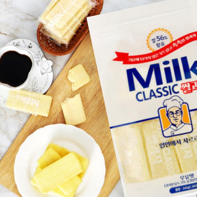 Milk Classic Rice Cracker 240g 2 Pack Large Size 밀크 클래식 쌀과자 - Korean Snack with Milk Flavor - Soft, Melt-in-the-Mouth Texture - Perfect Asian Rice Crackers for Light Snacking, Sweet & Milky