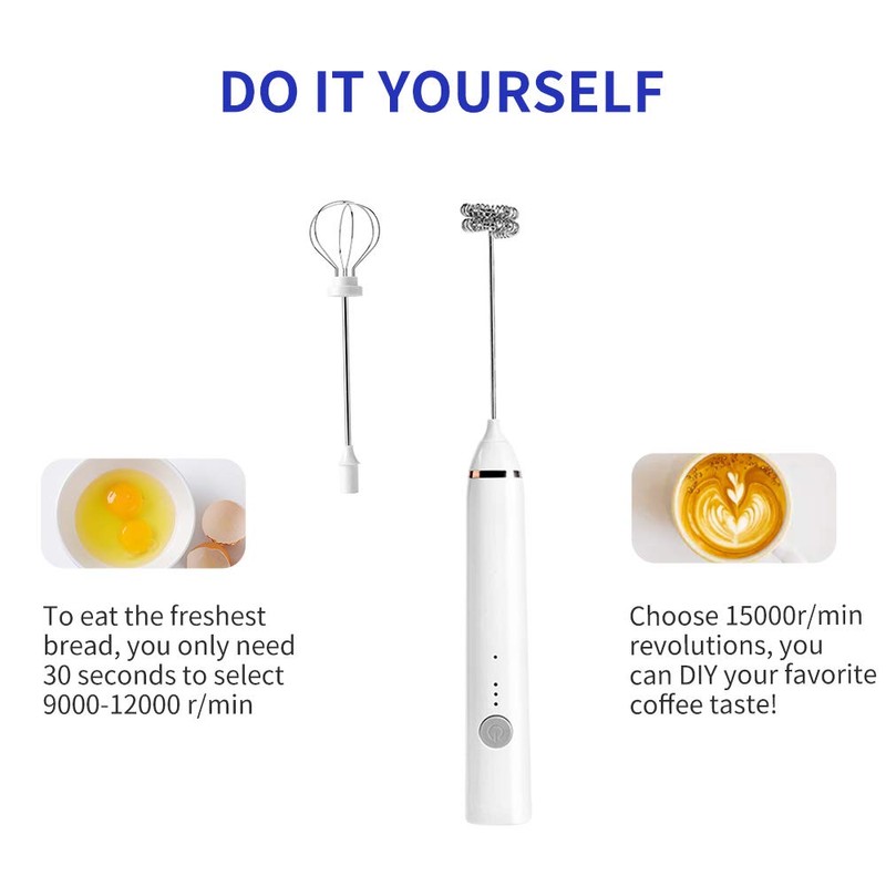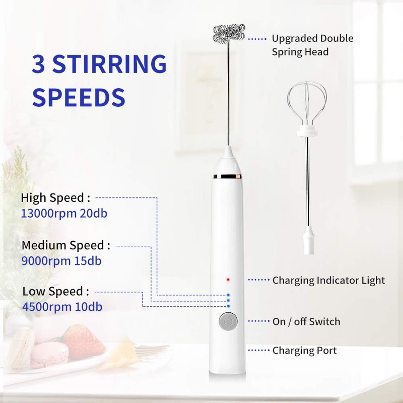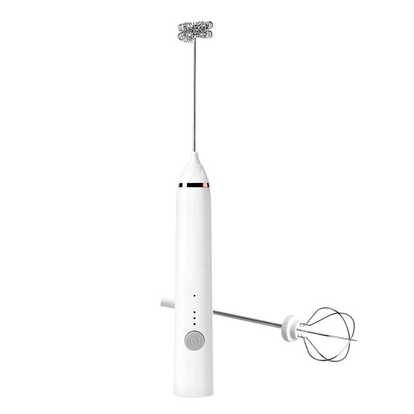 Milk Frother, Rechargeable hand-Held Electric Milk Frother 3 Adjustable USB Charging Can Be Used forBulletproof Coffee Protein Drinks Matcha Coffee Whisk (White)