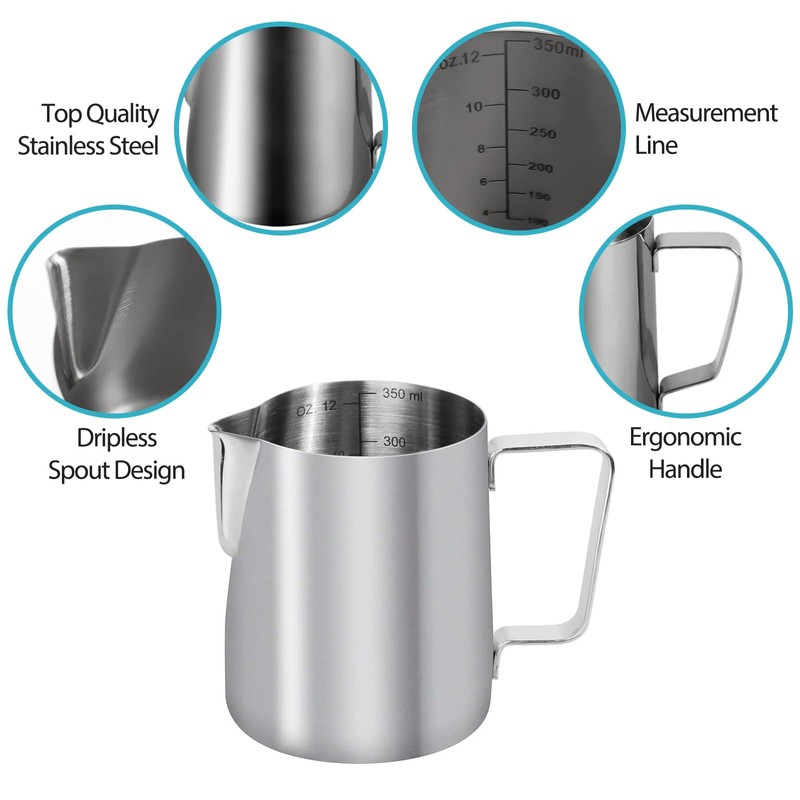 - 📏Precise Measurements for Every Drink:With a 350ml/12oz capacity and clear markings (100ml to 350ml), this jug helps you measure exactly the right amount of milk for any coffee recipe, whether it’s a single cup or multiple servings.