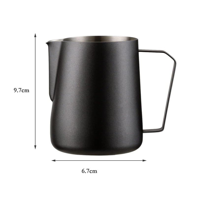 - Professional Design Milk Frother Pitcher: Bulge sharp mouth design, make it easier to control the pouring speed of the milk. Arced diversion trench, make the milk converge and flow together, make latte art more smooth and stable.
