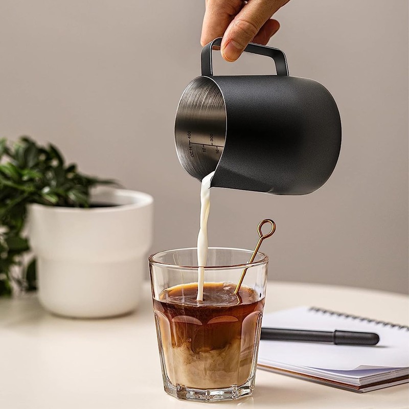 - Multiple Function: Our milk frothing pitcher can help you froth or steam milk for lattes; serve milk or cream.Perfect for water, juices, batter mixes, smoothies, and other pour-able item whether hot or cold.