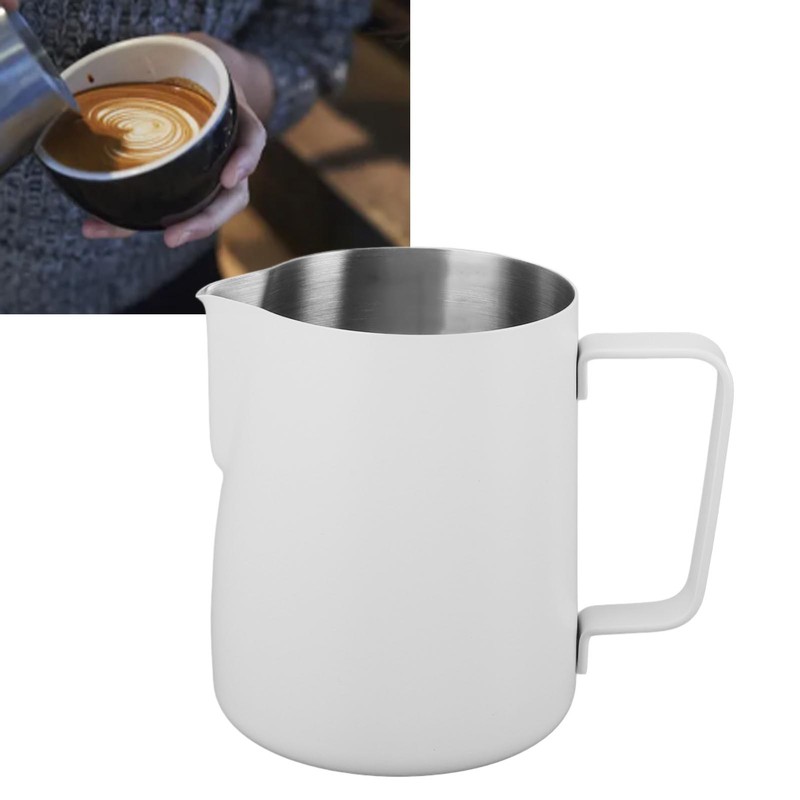 Milk Frothing Pitcher Steaming Pitcher Stainless Steel Comfort Grip Inner Marking Japanese Frother Cup Jug for Coffee Latte Art Milk White 600ML