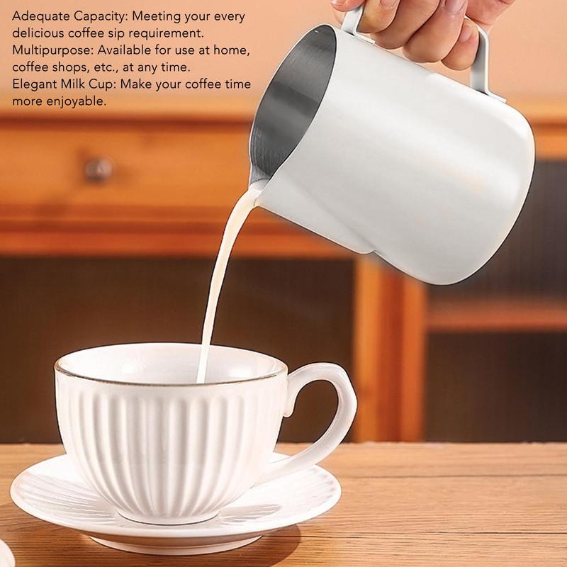 1、Durable Stainless Steel: This steaming pitcher is fabricated from 304 stainless steel ensuring extended durability. It's made to last longer, optimizing your coffee making experience years on end. 2、Elegant Japanese Style: Simple yet stylish, this Japanese style design adds a touch of sophistication to your kitchen. It's a perfect combination of aesthetics and functionality for your coffee pleasure. 3、Perfect Froth Creation: Specially designed for frothing, it's perfect to create fine, delicate chunks of bubbles, upgrading your coffee's taste and taking your coffee enjoyment to a whole new level. 4、Ample Capacity: With its ideal size, this milk frothing pitcher is proficient in handling your coffee brewing needs. Perfect for crafting a delicious cup of coffee, detailed to your preference. 5、Multipurpose Accessory: Ideal for multiple venues, your home, cafes, office, etc. Bracing its durable feature, it is an indispensable, highly recommended tool for your everyday coffee routine.