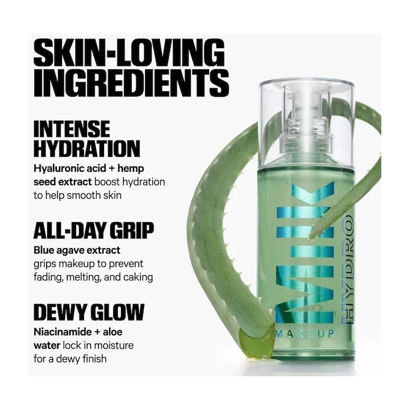 - - Blue Agave Extract: Grips makeup to prevent melting, fading, and caking.
