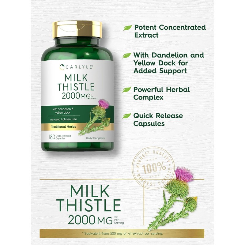 Milk Thistle 2000Mg | 180 Capsules | with Dandelion & Yellow Dock | Non-Gmo, Glu