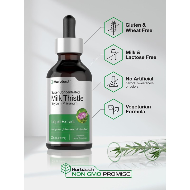 Horbäach Milk Thistle Extract Liquid | 2 fl oz | Alcohol Free | Vegetarian, Non-GMO & Gluten Free Supplement