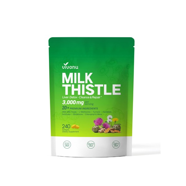 Milk Thistle Liver Detox Capsules, 3000mg Liver Cleanse Detox & Repair, 20-in-1 Advanced Support Complex with Milk Thistle, NAD, NAC, ALA, Dandelion,Glutathione, Artichoke, Turmeric, More 240 Softgels