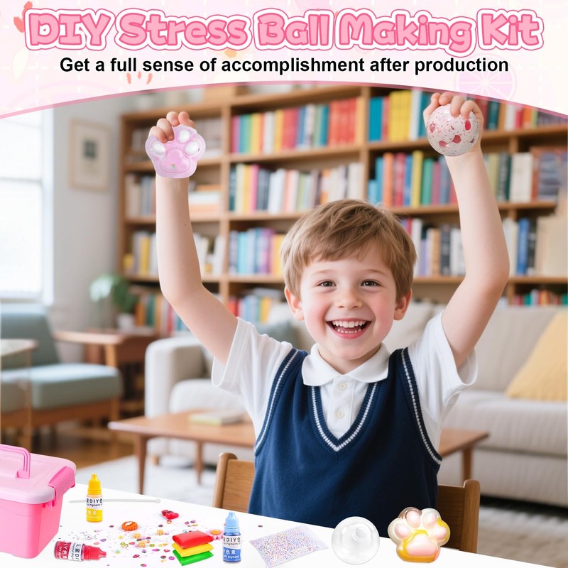 SENSORY EXPERIENCE Create noisy sand sticky ball textures or whisper-quiet designs. The empty ball and squishy ASMR stress ball with lid made of cat paw DIY material promote the tactile playing experience. Vacuum stress ball pops or decompression ball crunches promote concentration and encourage energetic fidgeting