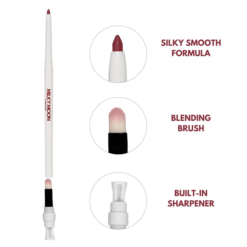 Milky Moon London Smooth Glide Cream Lip Liner, Rich Pigment, Longlasting Matte Formula with Sharpener and Brush for Precision, Merlot