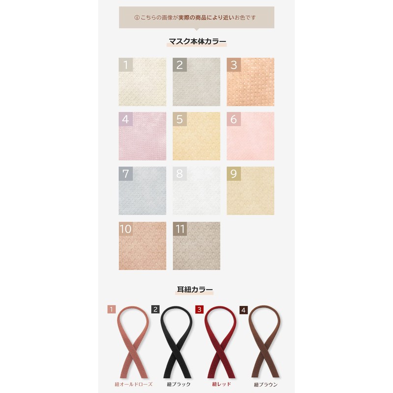 - ■ファンデーションが目立たない裏地カラーを採用。マスクを外した際に化粧移りが気になりません。