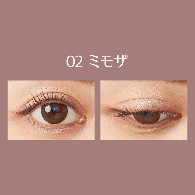 - 02 MIMOSA: The cream base is comfortable to the skin, and the small glitters give it an elegant glitter