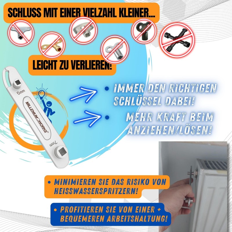 - 👍 Reduce energy costs and boiler failures: with the 4 standard sizes of our key, you always have the right tool at hand to optimise and extend the function of your radiators. The keyring ring makes it easy to carry.
