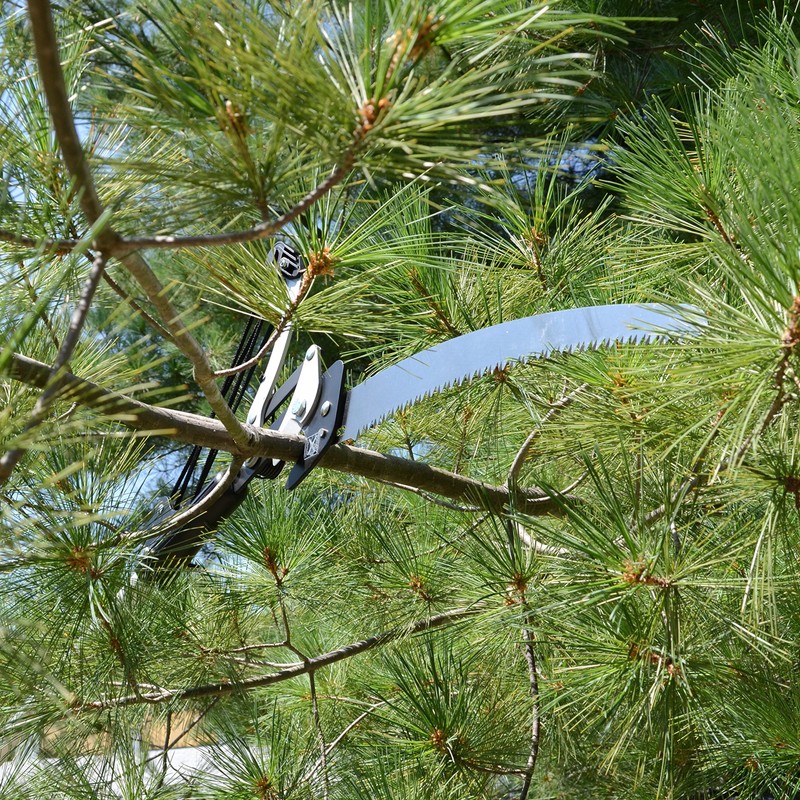 - Pully System - the double tackle compound pulley system is there to helps you cut through thick branches with the least effort on your part