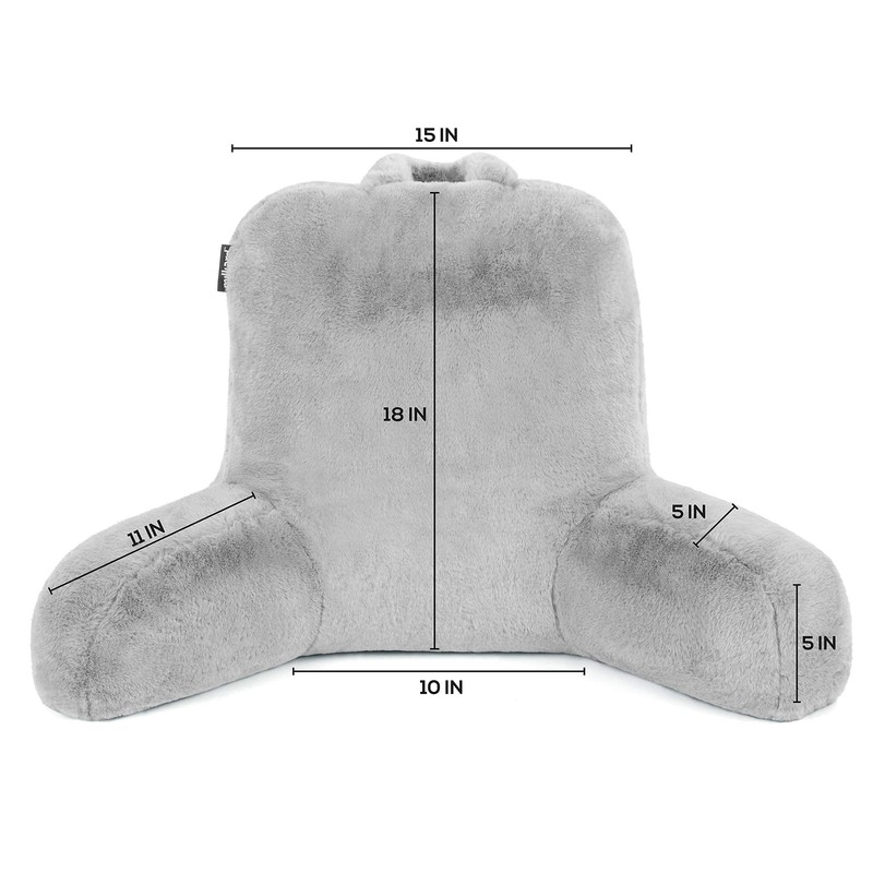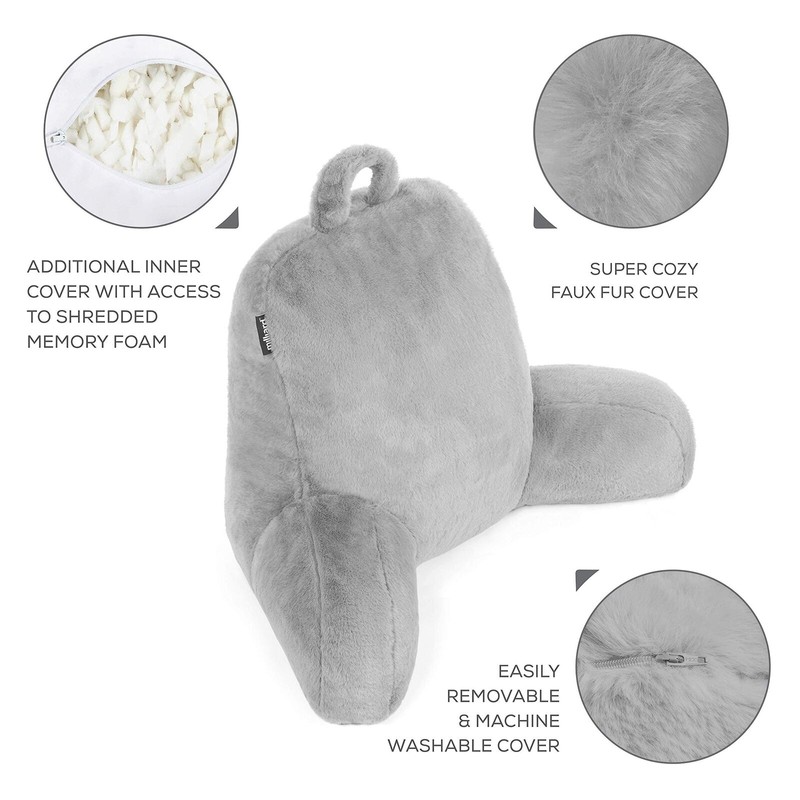 Milliard Reading Pillow with Shredded Memory Foam, Back Rest Pillow for Sitting in Bed with Faux Fur Removable Cover –18x15 inches (Grey)