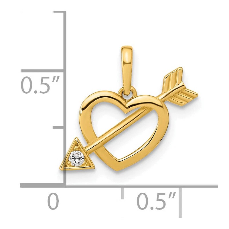 Million Charms 14k Yellow Gold Small Cut out Heart Valentine with Arrow CZ Charm Pendant