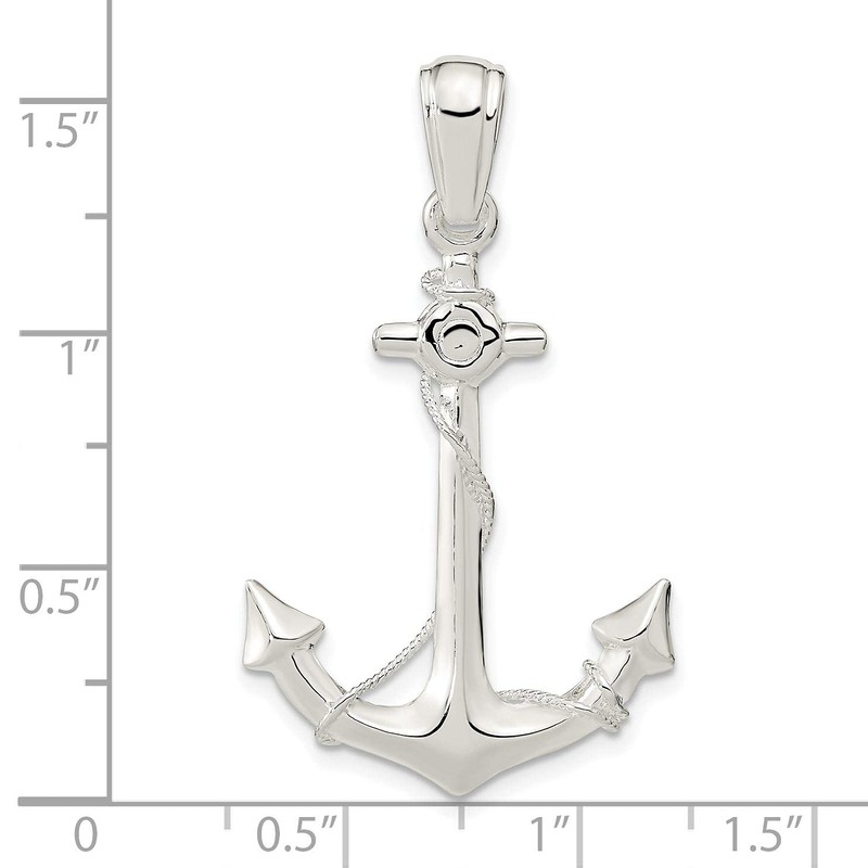 - Million Charms 925 Sterling Silver Nautical Charm, Polished 3D Medium Anchor with and Rope Pendant