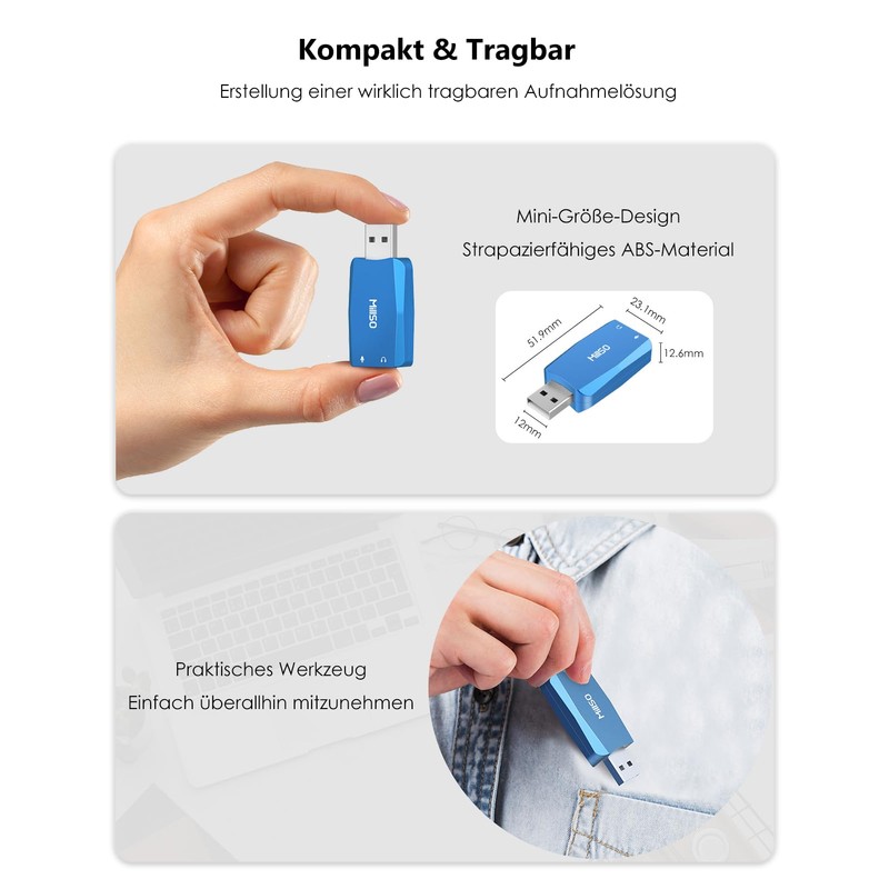 • Compact and portable: thanks to the compact design, MillSO USB headphone microphone adapter is portable and easy to carry. Whether you're in the studio, at home or on the go, it can be easily stored in a bag and when combined with a small microphone, it makes for a true portable recording solution.