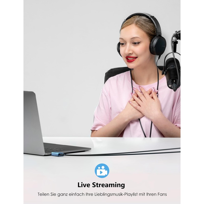 • Mobile live streaming: Connect your smartphone to the microphone jack of the sound card so you can share your favourite songs live with fans. Whether you're on the go and want to share your playlist or have an impromptu jam session with friends, this microphone and headphone to USB adapter gives you the opportunity to share your music with ease and delight your friends.