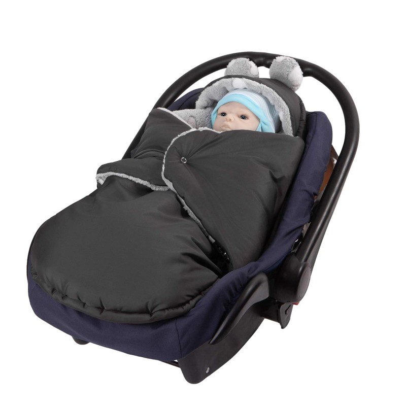 - Fits child seats as it has slots for 3 and 5 point harnesses. In addition, the swaddling blanket has a hood that protects your baby's head.